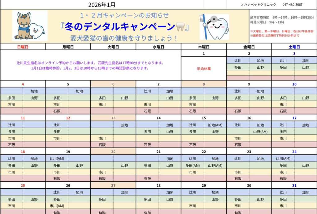 1月の診療案内