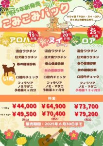 今年はお得なワクチン、狂犬病、予防薬全て込み込みパックが新登場‼️